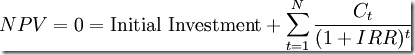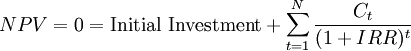 Mathematically the IRR is defined as any discount rate that results in a net present value of zero of a series of cash flows.